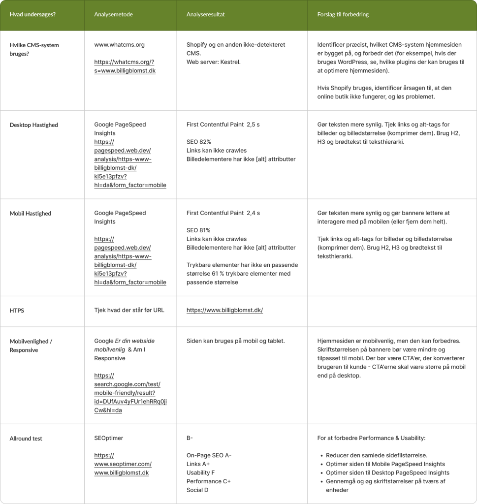 Gangstertest was conducted to analyse how easy or difficult is for an user to navigate on the website, how is the overall feeling of the customer journey. The billigblomst.dk website scored 13 both on desktop and on mobile. That means that the website’s navigation works well overall, but there is place for improvement.