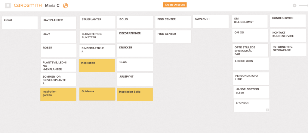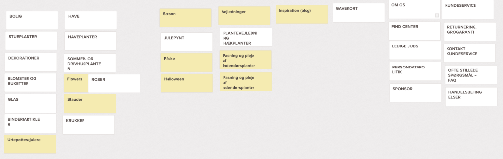 The open cart sorting test was conducted on 3 participants. The results show that the information architecture of the current website lacks many categories the users would look for on a garden center website.