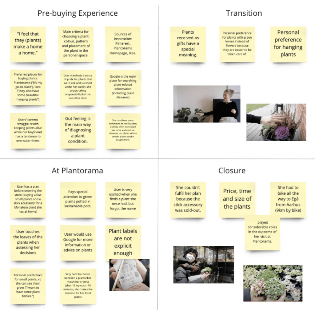 Ethnographic research observation also provided valuable insights. This was conducted on a 28 years old Danish woman who agreed to be recorded when talking about her plant preferences, while