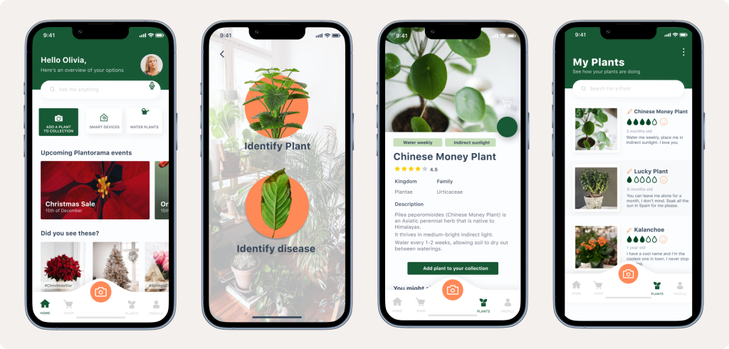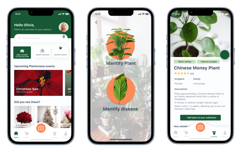 The new digital concept meets users’ needs for plant recognition and plant caring. The newly designed app identifies plants, plant diseases, offers personalised plant advice through a